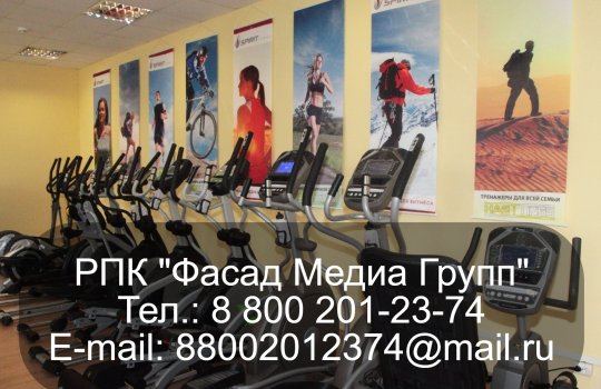 РПК «Фасад Медиа Групп» разместила рекламу спортивной одежды в фитнес-клубах. Реклама размещена на 1 месяц. Изготовлением дизайн-проекта занимались специалисты нашей компании
