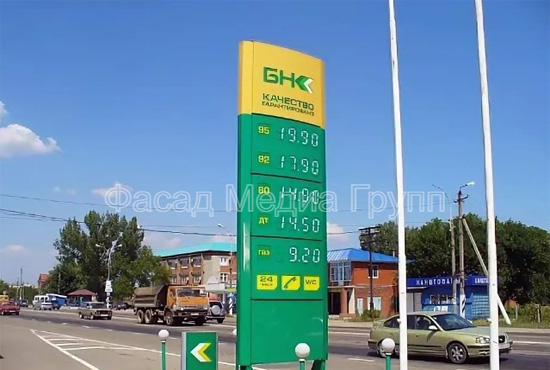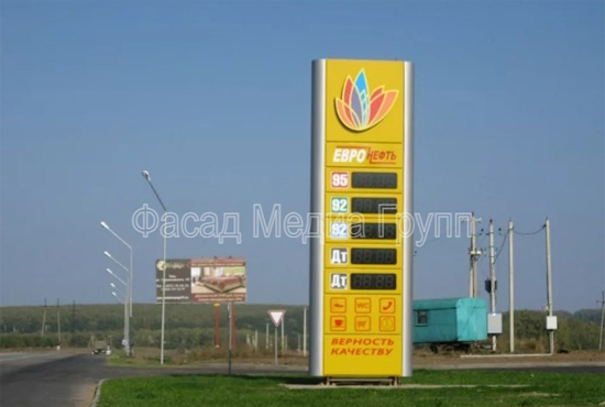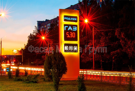 Рекламно-производственная компания "Фасад Медиа Групп" занимается изготовлением стел для АЗС «под ключ»: