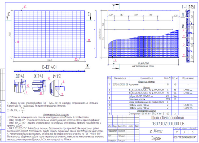 Выше указывалось, что проектирование видеоэкранов – это процесс, состоящий из целого ряда логически последовательных действий, которые представляют собой систему и направлены на определенный результат, а именно: подготовка технического проекта или паспорта светодиодного экрана.