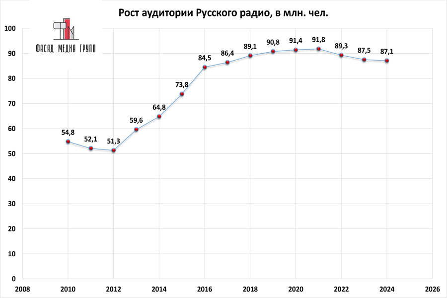 Показатели аудитории «Русского радио» по России: