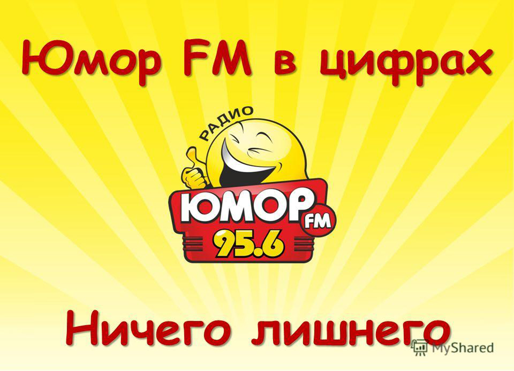 Юмор FM – это российская радиостанция, впервые вышедшая в радиоэфир 26 сентября 2003 г. Прежнее название – «Смешное радио». Радиостанция пришла на смену «Радио Диско», т.е. заимствовало ее частоту. При выборе названия новой радиостанции было предложено три варианта: «Юмор FM», «Витамин FM» и «Веселое радио». Выбор проводился путем социологического опроса. В результате первый вариант набрал большее число голосов.