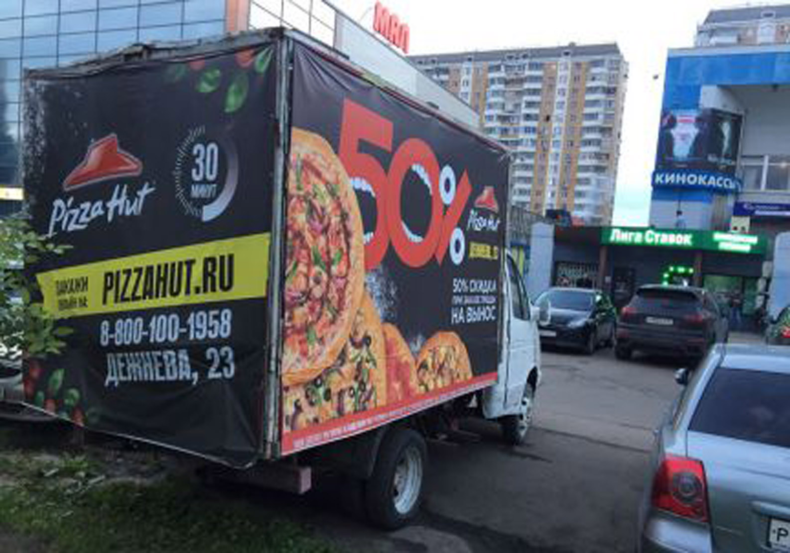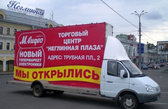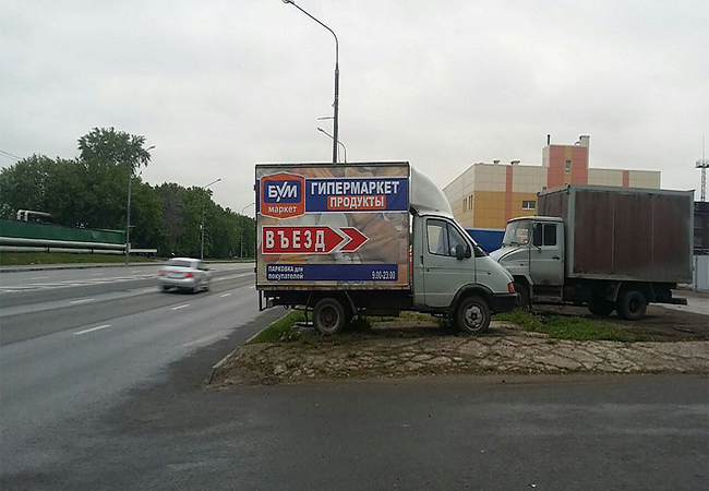 Приводим примеры монтажа рекламы на мобильных билбордах: