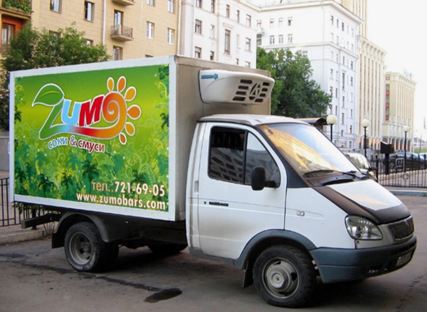Выше уже приводились виды пленки, которые нами используются в работе. При этом необходимо особо отметить, что при брендировании мобильных билбордов в Ангарске мы применяем два вида оклейки: