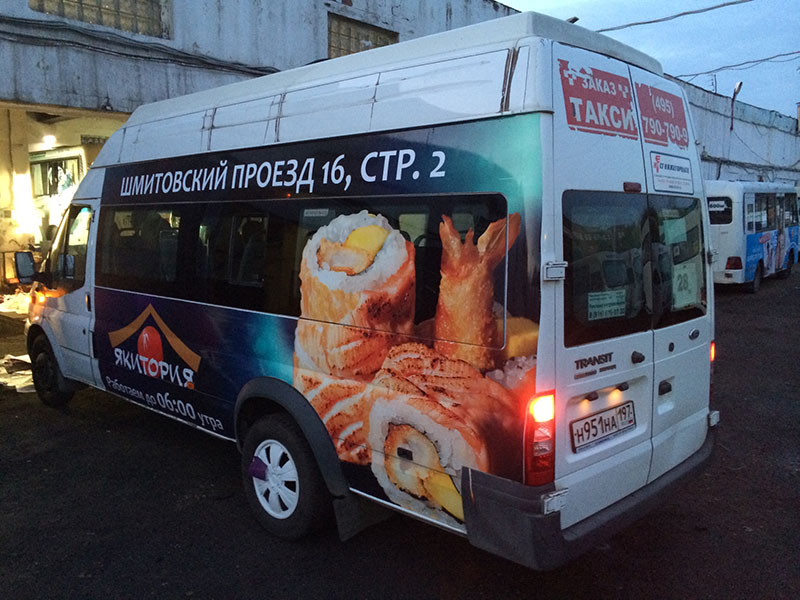 Оклейка левого борта маршрутки на фото выше