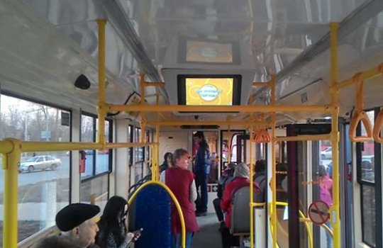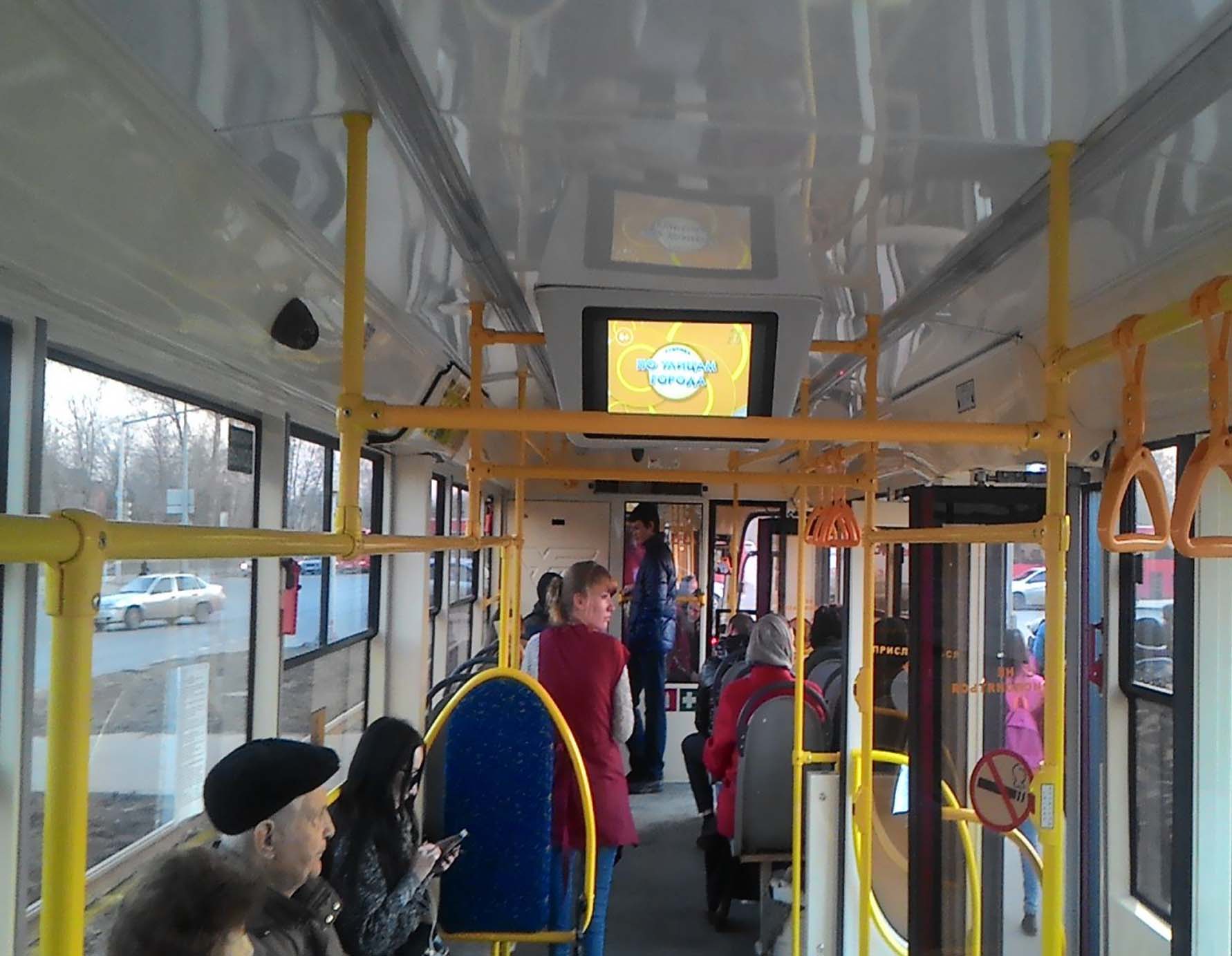 Реклама на мониторах в трамвае на фото выше