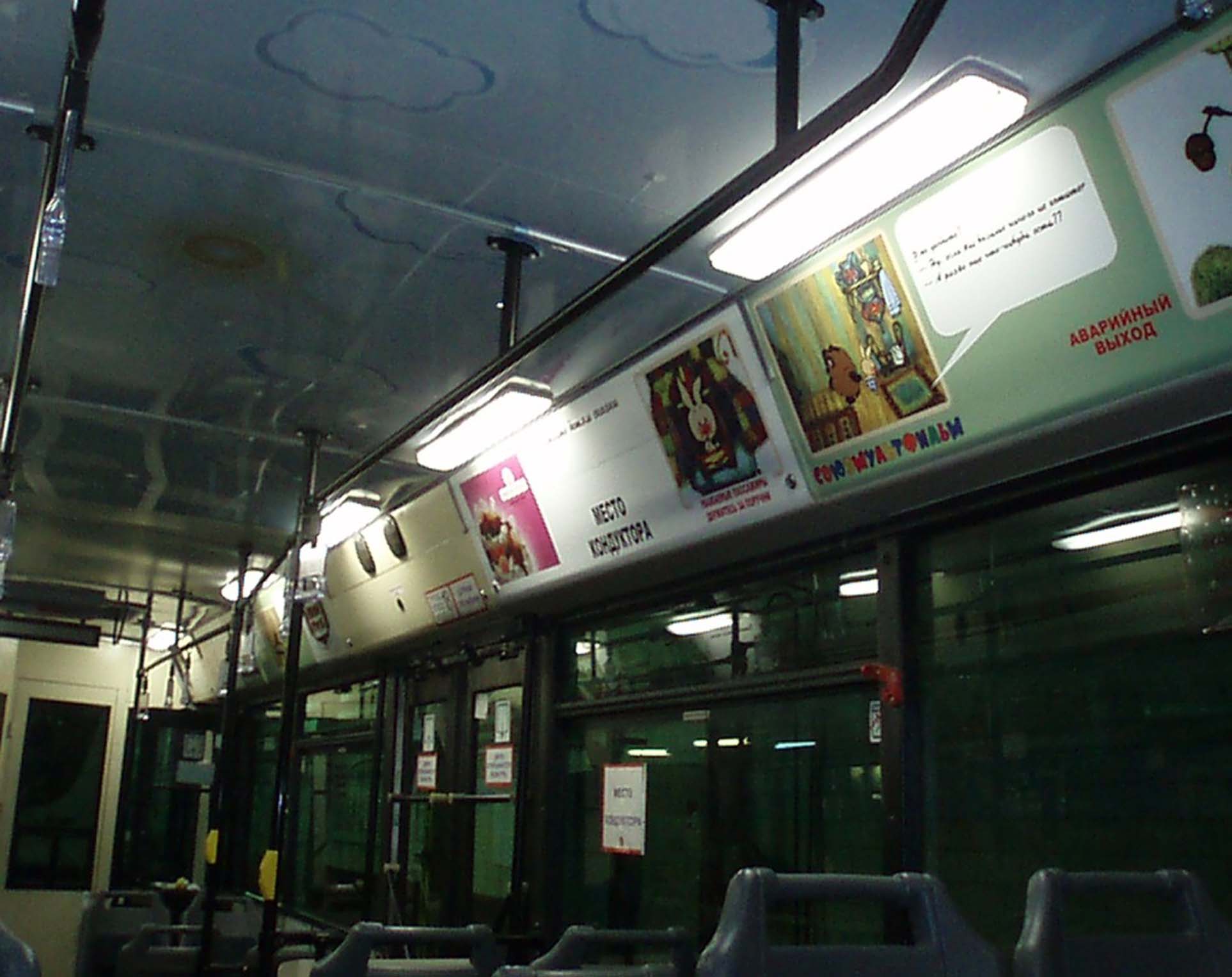 Рекламные стикеры в трамвае на фото выше