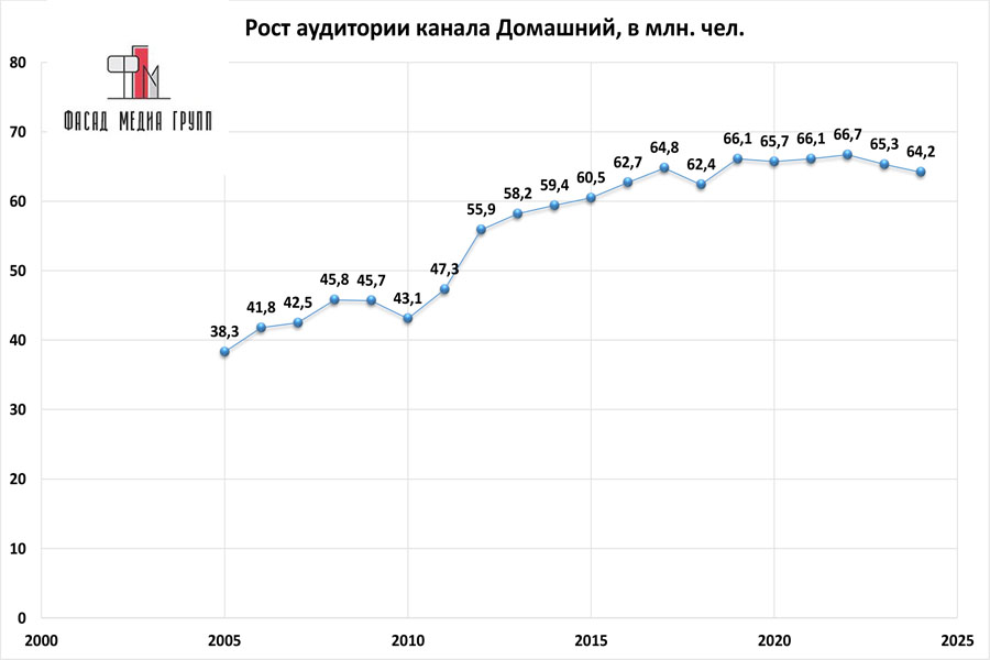 Популярность телеэфира на «Домашнем» приводит к ежегодному увеличению спроса на рекламное время. Для привлечения клиентов из разных регионов России, увеличения процента продаж, повышения имиджа компании и узнаваемости бренда – размещайте рекламу на «Домашнем». «Домашний» – это проверенный и востребованный канал для размещения рекламы на ангарском ТВ. Для размещения рекламы на телевидении обращайтесь в рекламное агентство «Фасад Медиа Групп». Будем рады сотрудничеству.