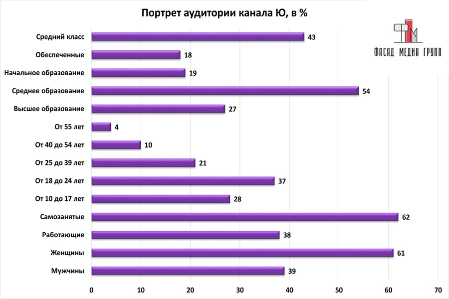На вопрос: «Какова целевая аудитория телеканала «Ю»? - можно указать следующее:
