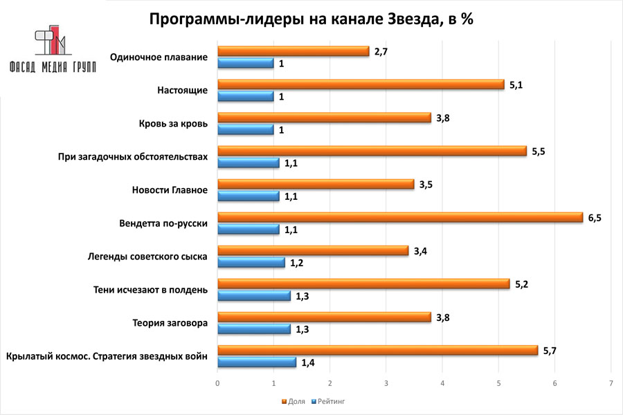 Популярность телеэфира на «ЗВЕЗДЕ» приводит к ежегодному увеличению спроса на рекламное время. Для привлечения клиентов из разных регионов России, увеличения процента продаж, повышения имиджа компании и узнаваемости бренда – размещайте рекламу на «ЗВЕЗДЕ». «ЗВЕЗДА» – это проверенный и востребованный канал для размещения рекламы на ангарском ТВ. Для размещения рекламы на телевидении обращайтесь в рекламное агентство «Фасад Медиа Групп». Будем рады сотрудничеству.
