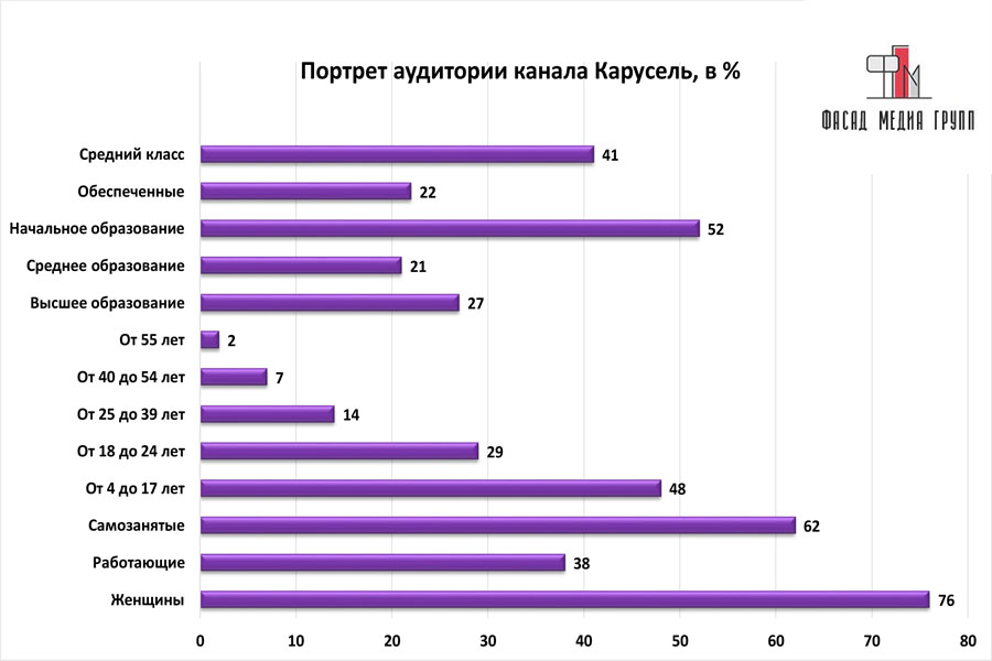 Благодаря качественному, сбалансированному контенту аудитория «Карусели» многочисленна и разнообразна.