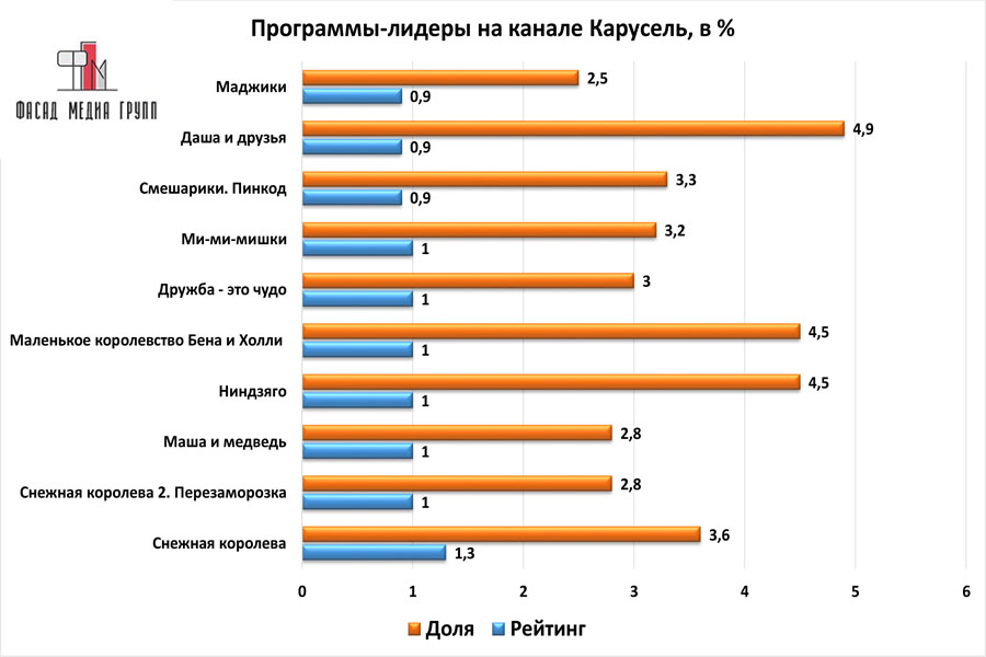 Популярность телеэфира на «Карусели» приводит к ежегодному увеличению спроса на рекламное время. Для привлечения клиентов из разных регионов России, увеличения процента продаж, повышения имиджа компании и узнаваемости бренда – размещайте рекламу на «Карусели». «Карусель» – это проверенный и востребованный канал для размещения рекламы на ангарском ТВ. Для размещения рекламы на телевидении обращайтесь в рекламное агентство «Фасад Медиа Групп». Будем рады сотрудничеству.