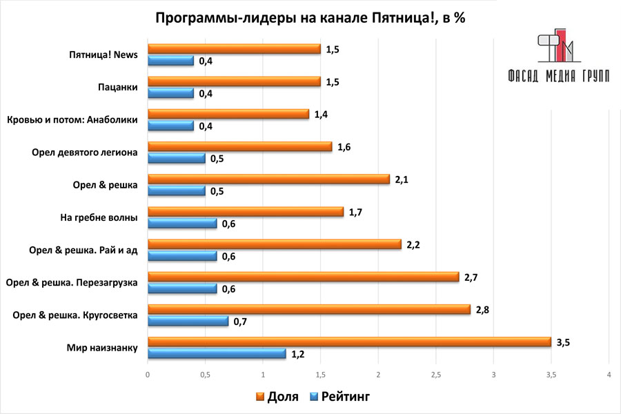 Показатели аудитории «Пятницы!» по России: