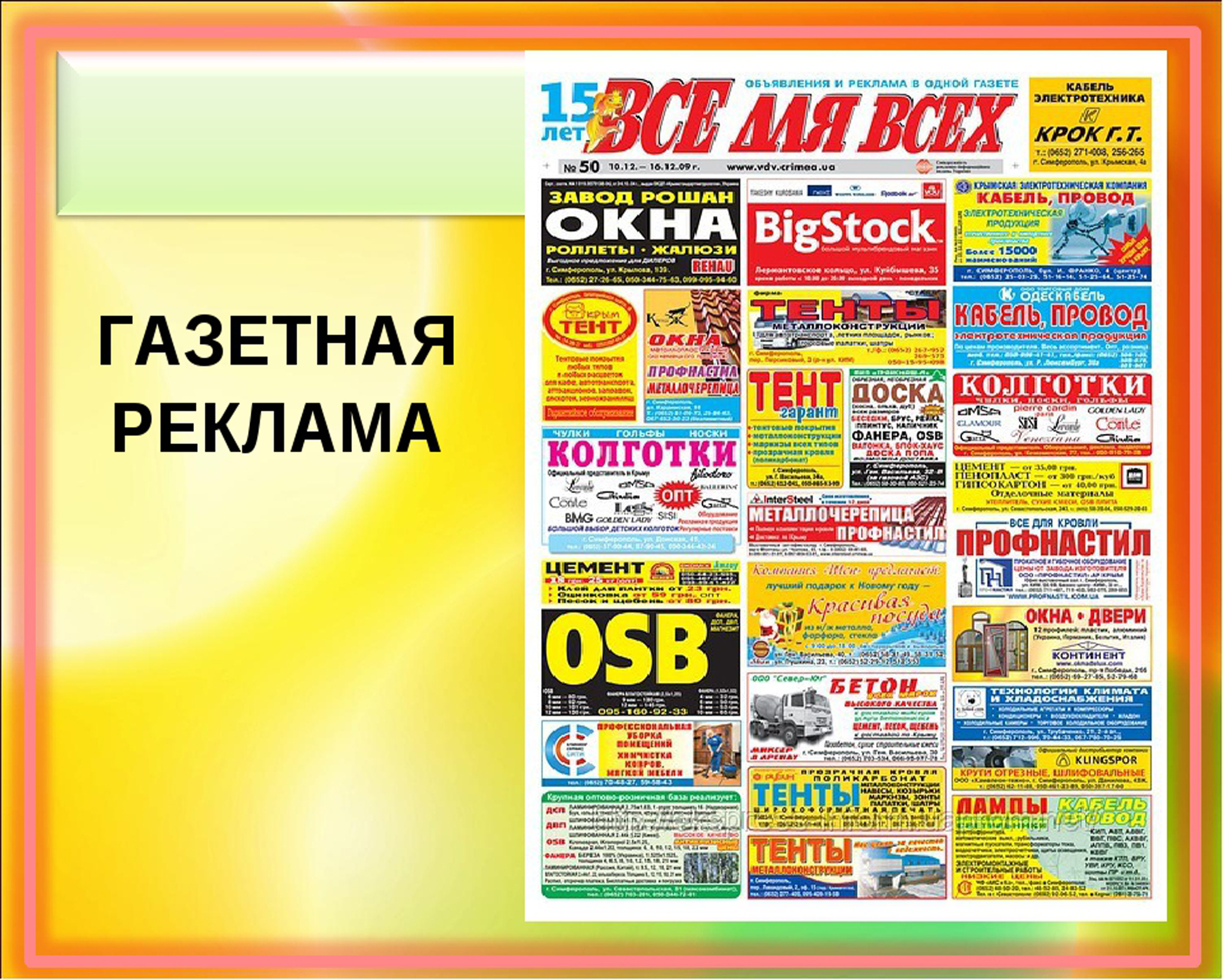 Размещение рекламы в газете |