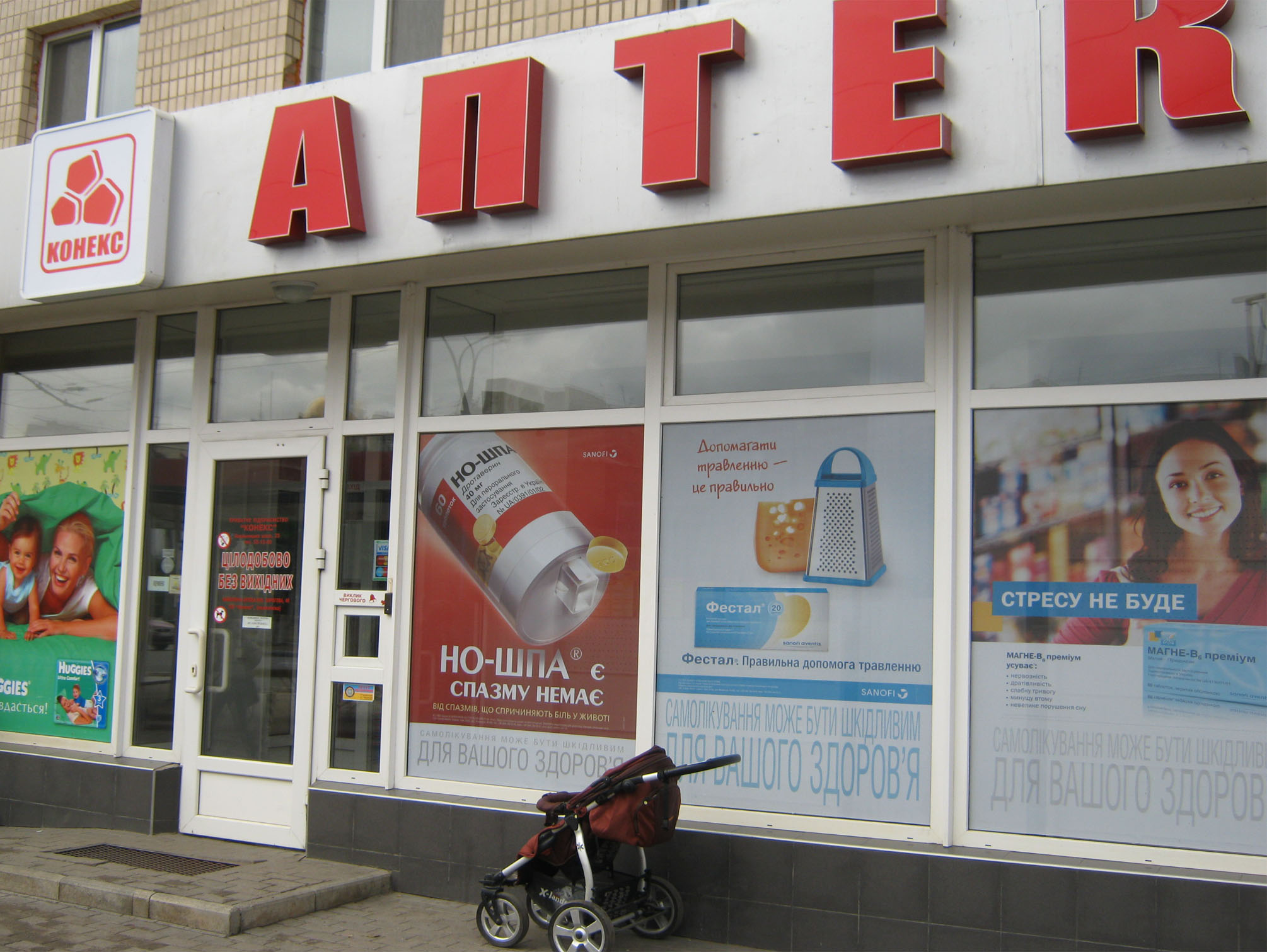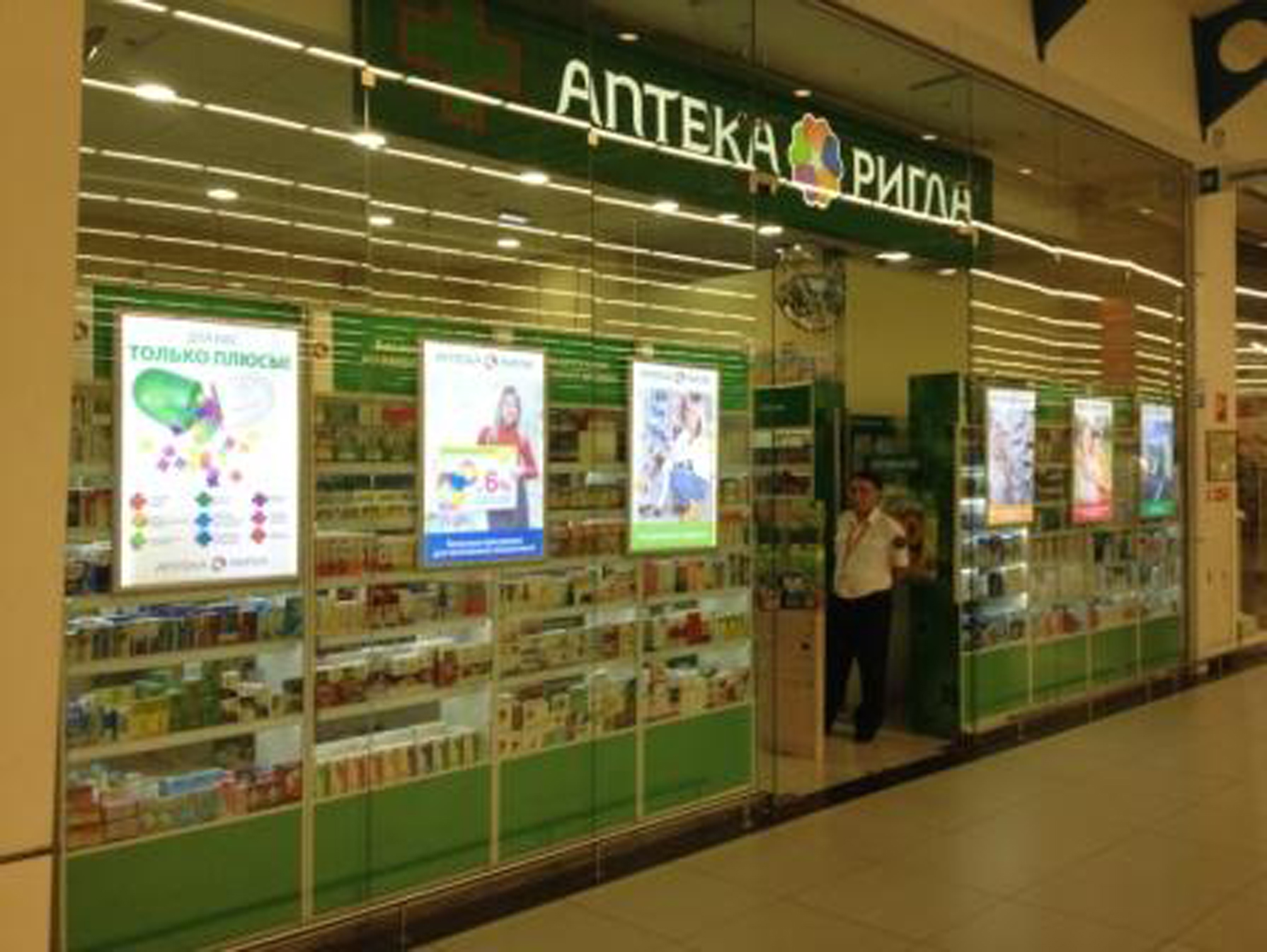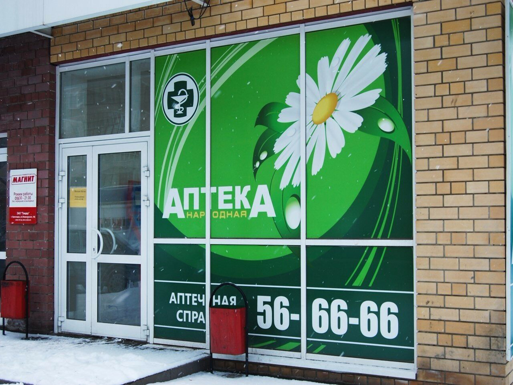 Пример брендирования входа в аптеках: