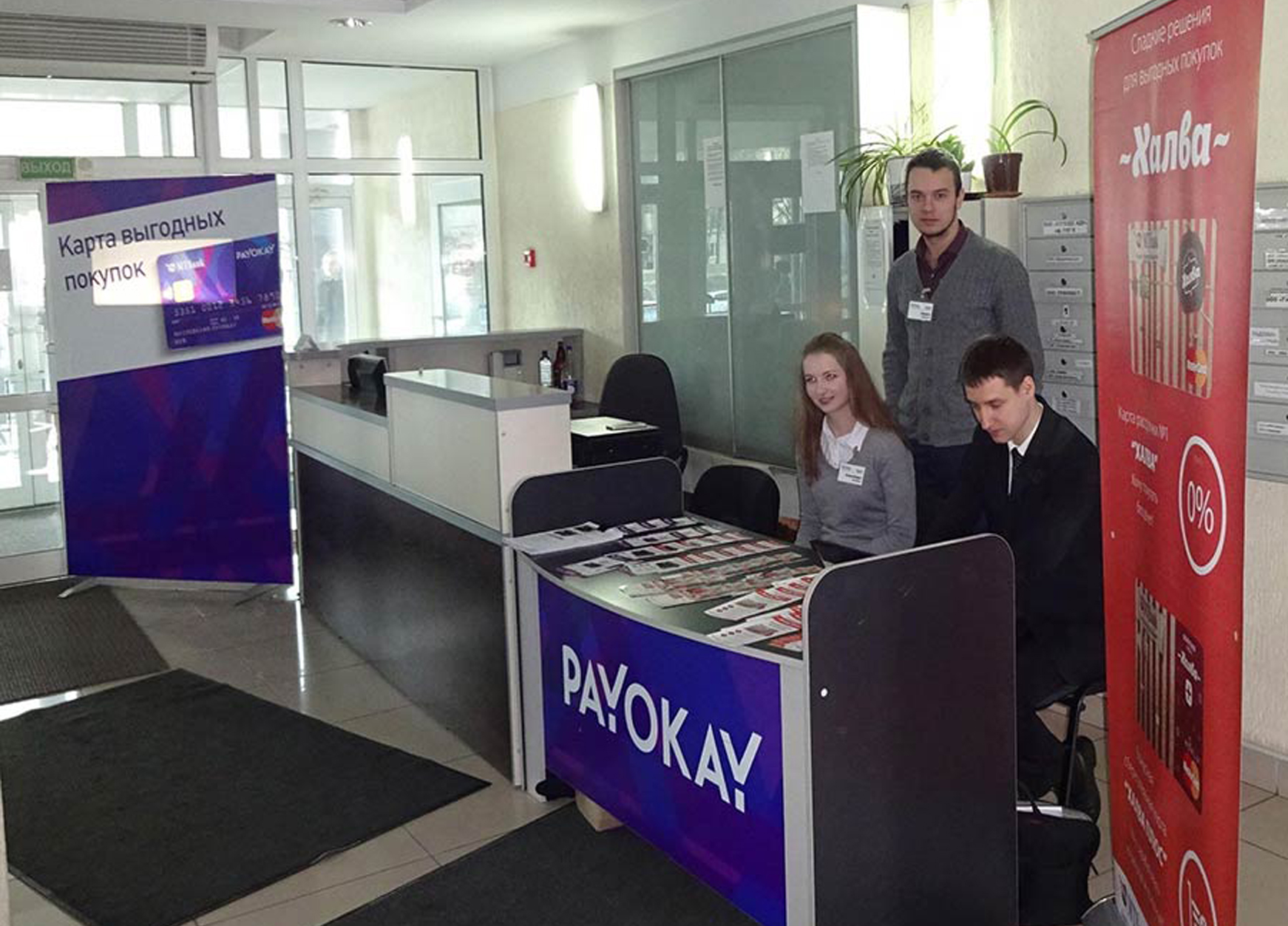 Пример брендирования входа и зоны ресепшн в бизнес-центрах: