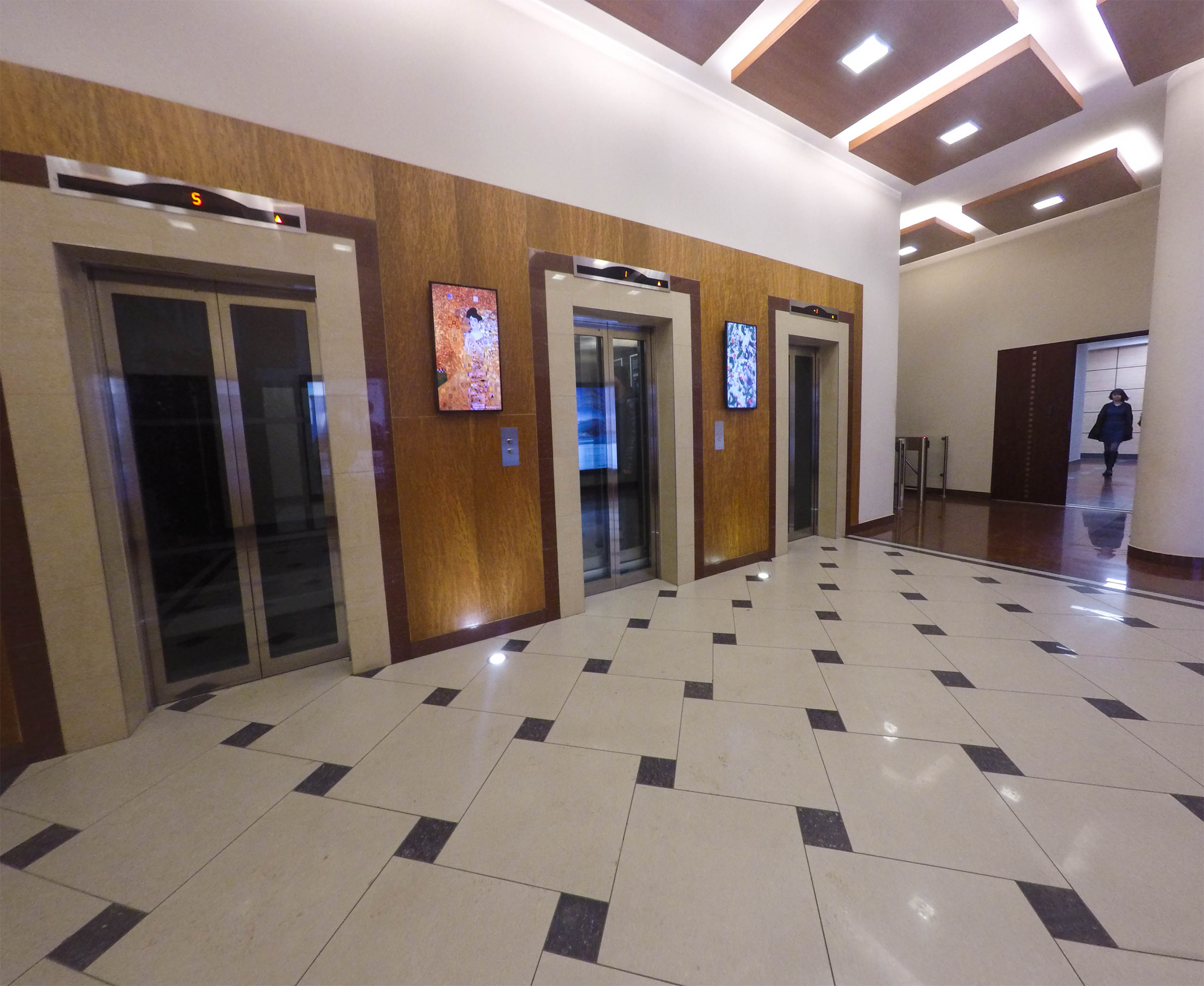 Пример брендирования лифтов в бизнес-центрах: