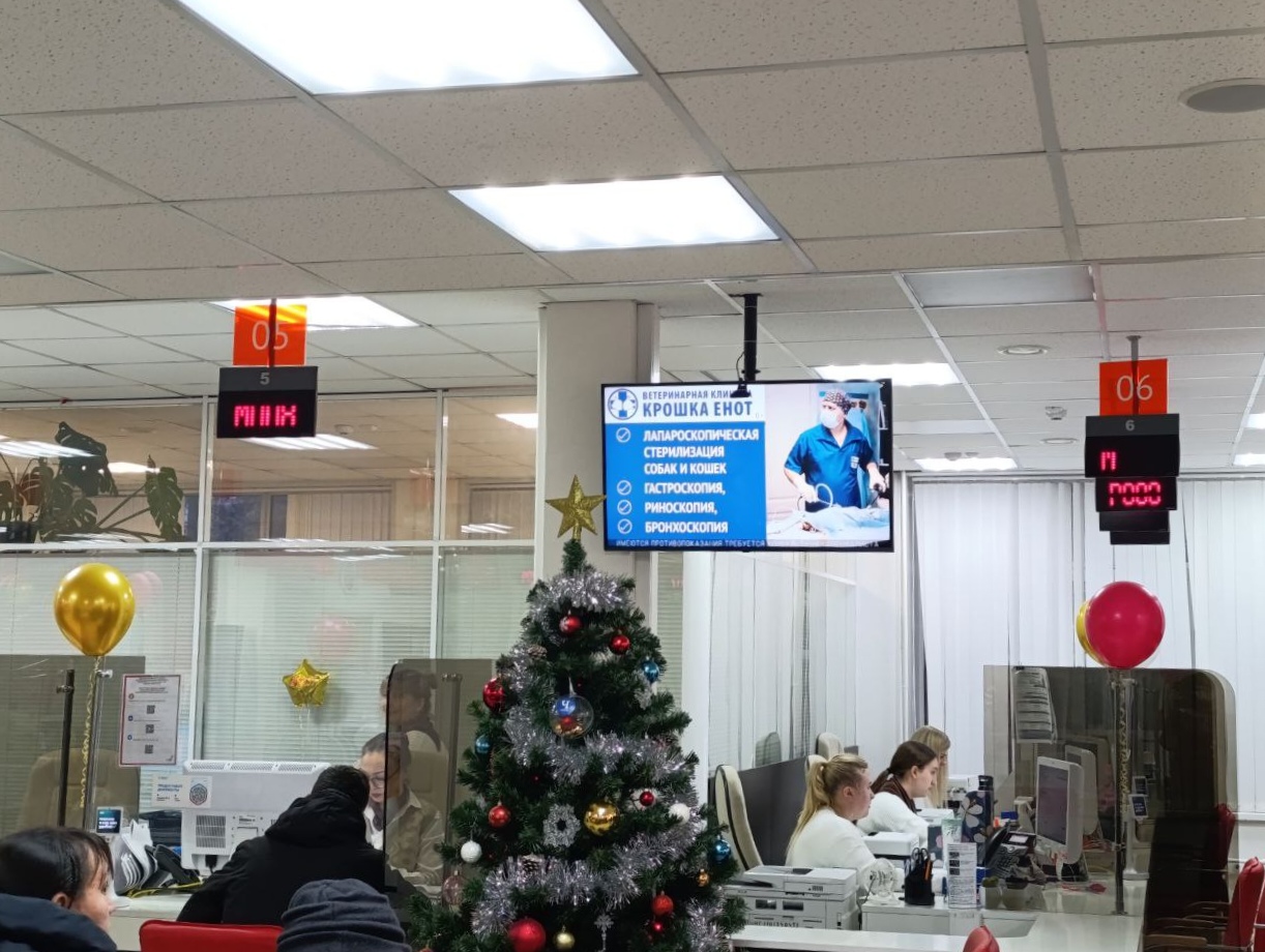 Пример рекламы на мониторе в отделении МФЦ: