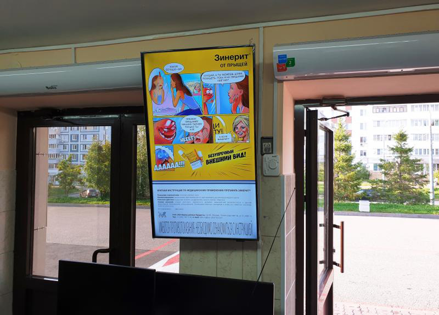 Пример рекламы на мониторе в ВУЗе: